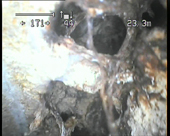 Nous constatons à environ 23,00ml de ce regard un trou dans la canalisation.