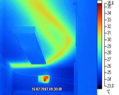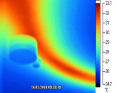 Thermographie infrarouge du passage du reseau de chauffage au sol dans la dalle.
